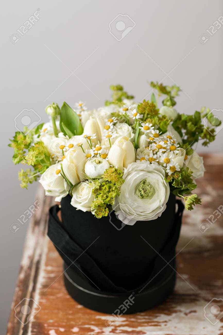 Fleurs Blanches Melangees Bouquet De Roses Et De Renoncules Dans