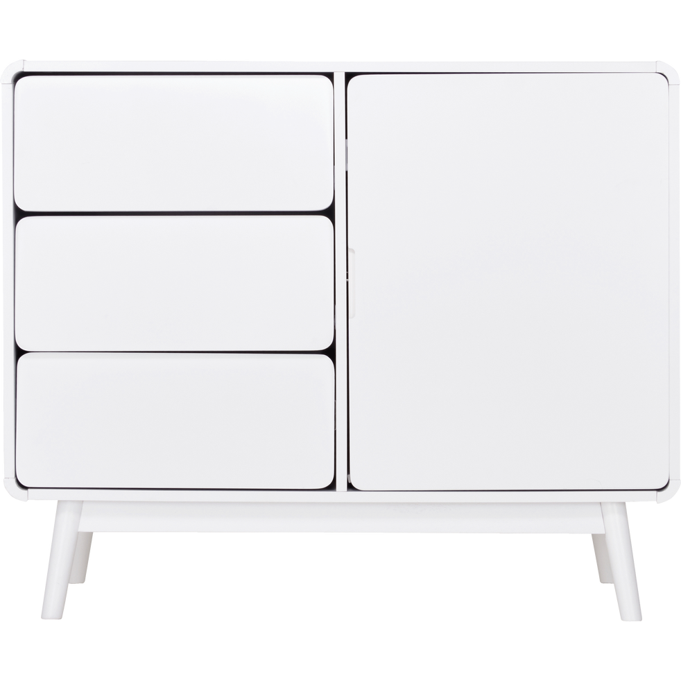 Buffet Retro Blanc 1 Porte Et 3 Tiroirs Aubun Alinea