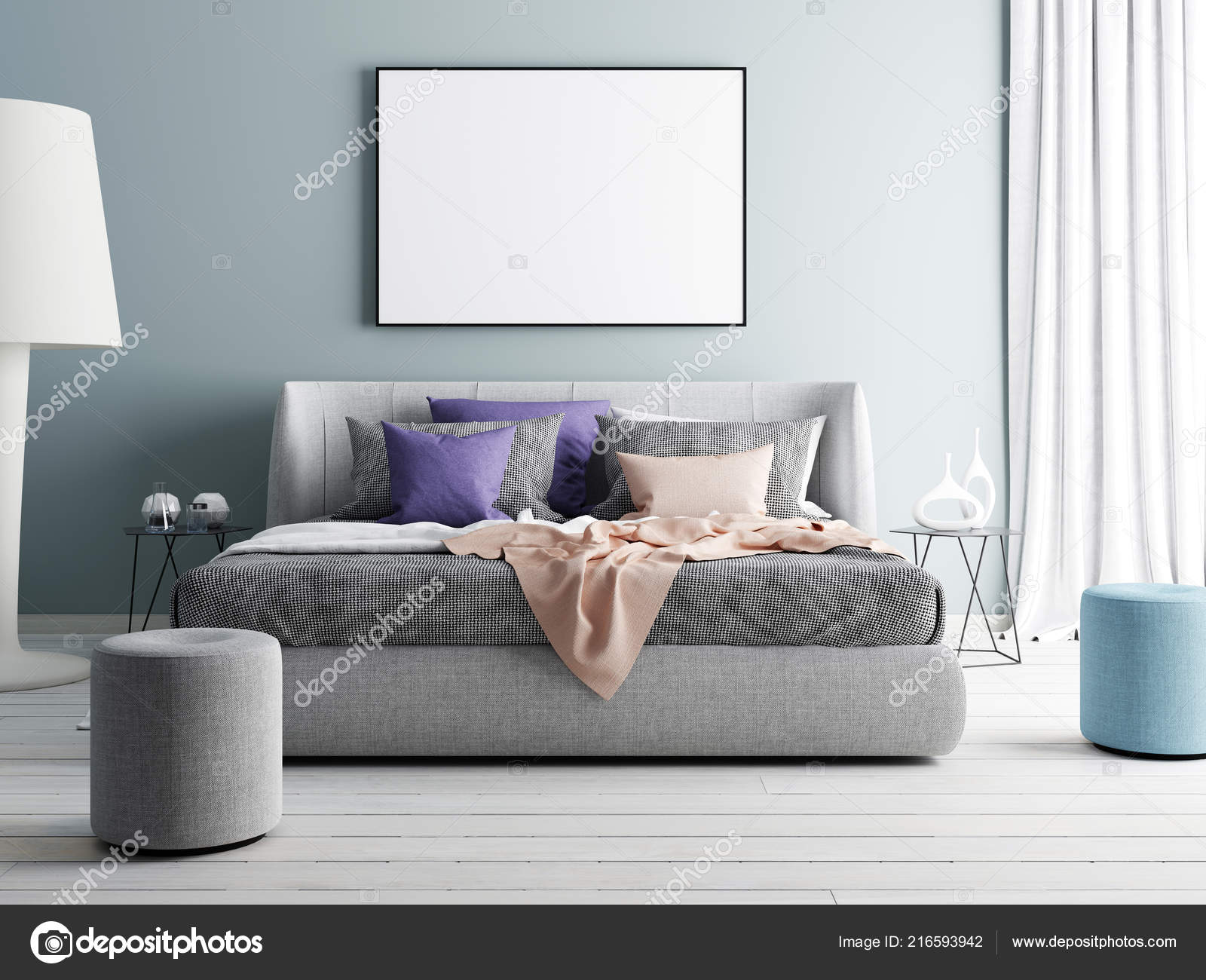 Photo De Stock De Matin Dune Chambre Confortable Avec Des Murs Bleu